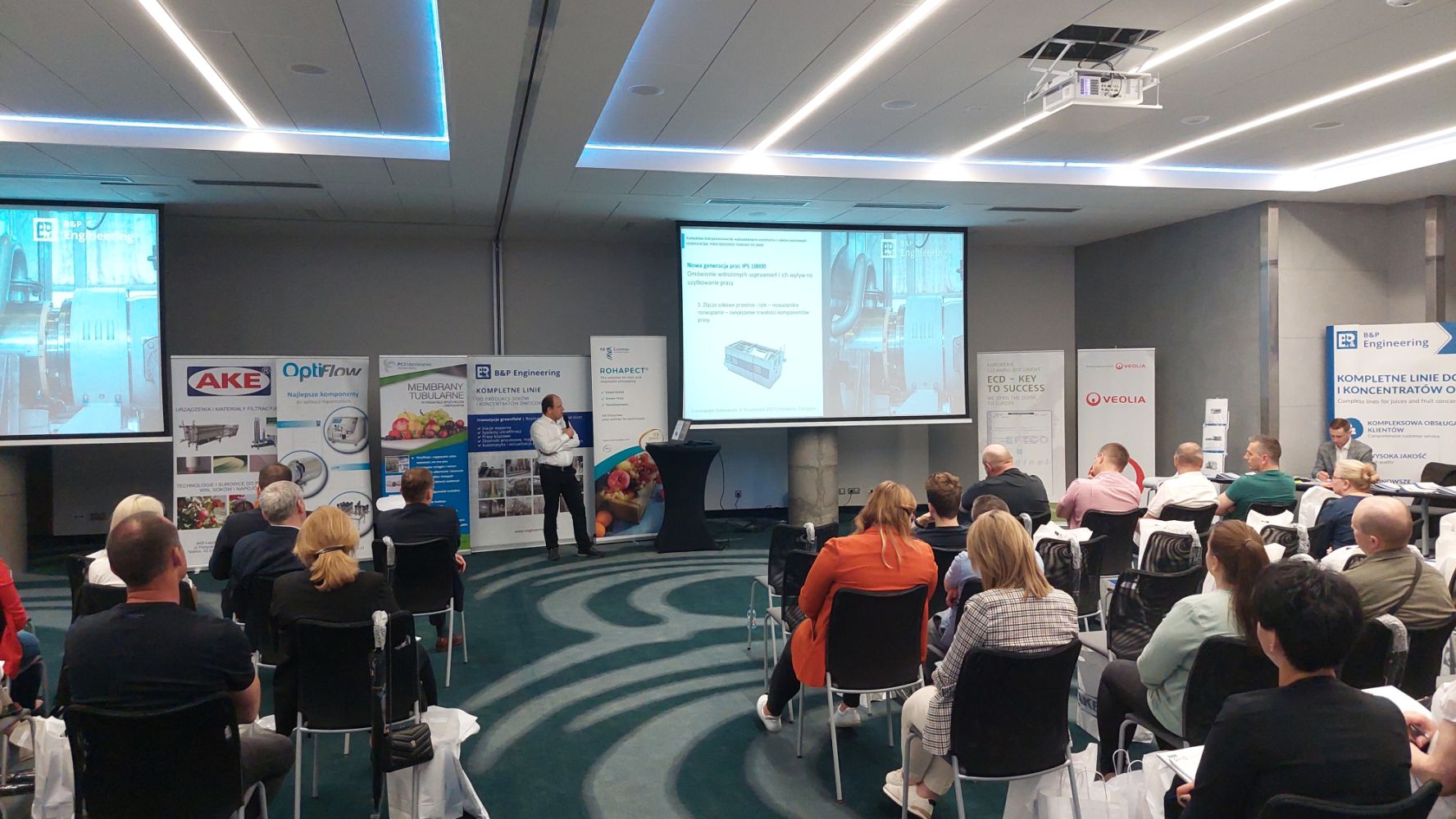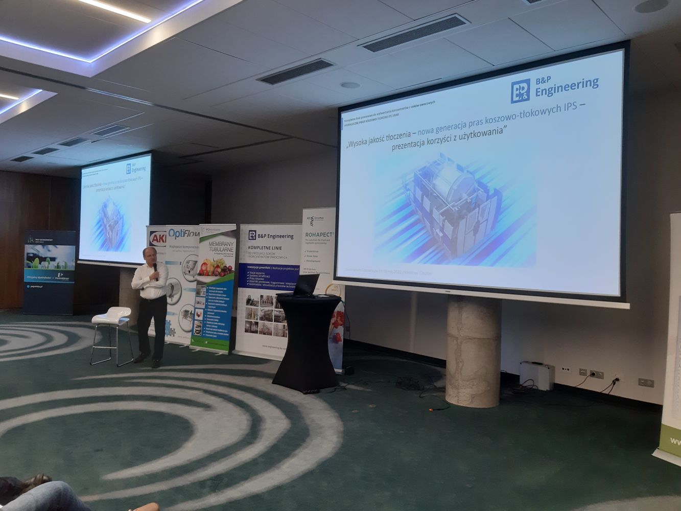 Prezentację poświęconą prasom nowej generacji do produkcji soków NFC oraz koncentratów, wygłosił Artur Kiełb, który jest odpowiedzialny za rozwój produktów w B&P Engineering.