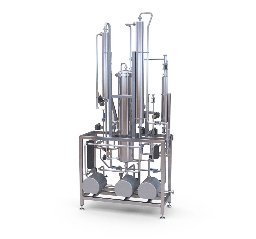 Urządzenie wbudowane jest w istniejący system rurarzy. Składa się z dzwonkowej kolumny, w której następuje wstępne skroplenie oparów aromatu, oraz stacji aromatu, gdzie aromat zostaje zagęszczony do odpowiedniego stężenia, a następnie schłodzony. Schłodzenie następuje dwuetapowo – pierwsza sekcja chłodzenia realizowana jest za pomocą wody chłodzącej, druga sekcja poprzez agregat chłodniczy.